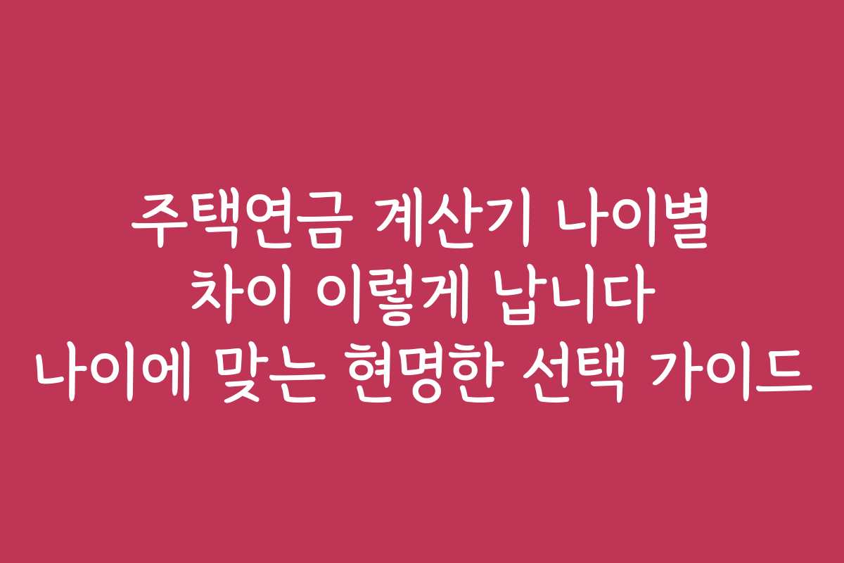 주택연금 계산기 나이별 차이 이렇게 납니다 나이에 맞는 현명한 선택 가이드
