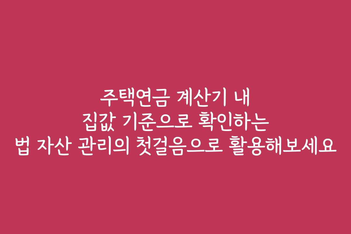 주택연금 계산기 내 집값 기준으로 확인하는 법 자산 관리의 첫걸음으로 활용해보세요