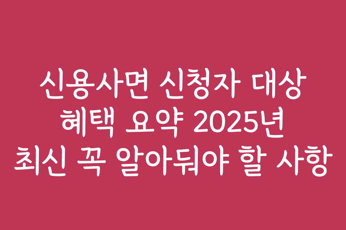 신용사면 신청자 대상 혜택 요약 2025년 최신 꼭 알아둬야 할 사항