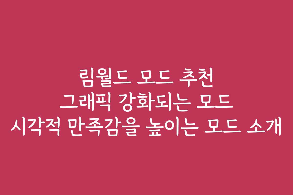림월드, 그래픽 강화 모드, 시각적 만족감, 게임 경험, 모드 설치 방법, 모드 추천, 실시간 전략 게임, 몰입도 향상, 플레이어 경험, 그래픽 개선, 사용자 맞춤 설정