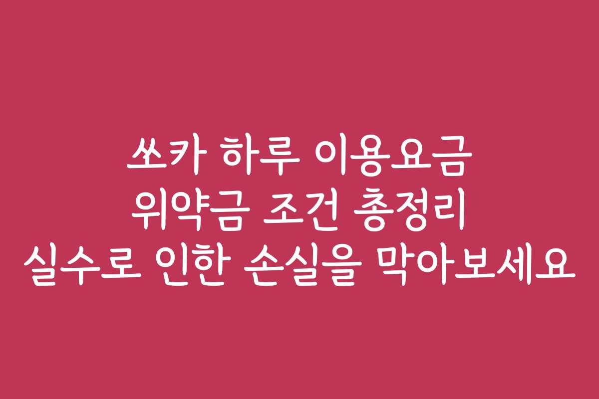 핵심 키워드: 쏘카, 하루 이용요금, 위약금, 차량 이용, 예약, 취소, 점검, 서비스 비교, 고객 후기, 안전 수칙, 불만 처리