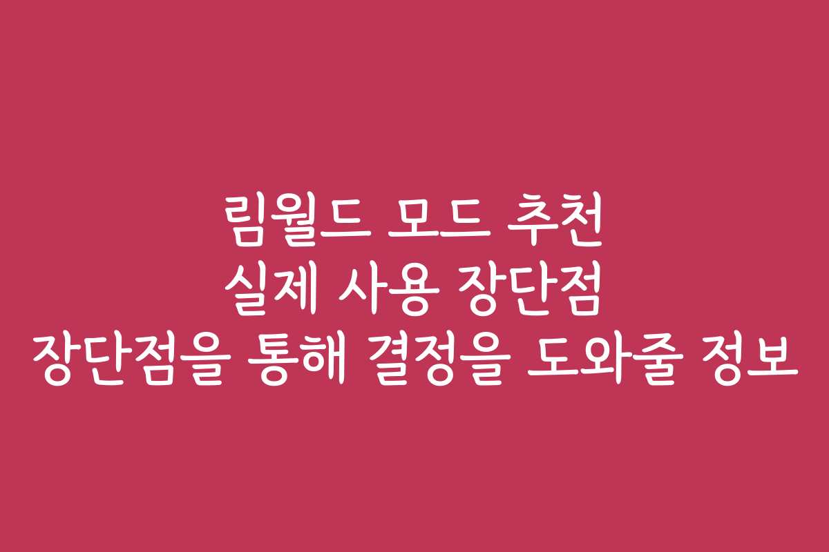 게임의 재미를 극대화하기 위해서는 모드의 활용이 필수입니다. 모든 사람들이 자신에게 맞는 모드를 찾는 과정에서 겪는 다양한 문제들을 해결하기 위한 솔루션을 모아보았습니다. 이번 포스팅에서는 림월드 모드 추천과 실제 사용 장단점을 통해 여러분의 선택에 도움을 줄 정보를 제공합니다.