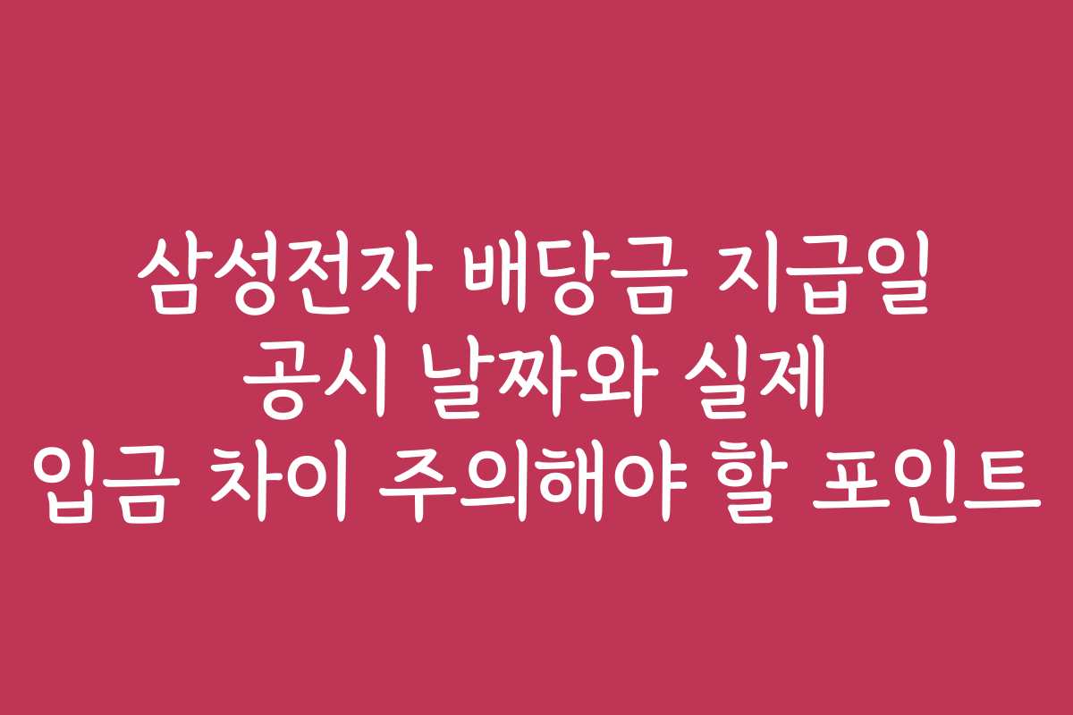 삼성전자 배당금 지급일 공시 날짜와 실제 입금 차이 주의해야 할 포인트