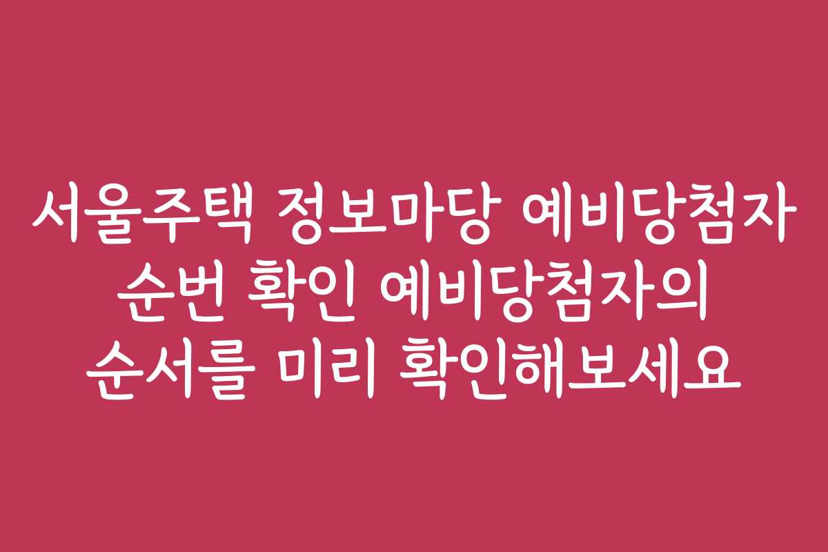 서울주택 정보마당에서 예비당첨자 순번을 어떻게 확인할 수 있는지 궁금하신가요? 이번 글에서는 예비당첨자의 순서를 미리 확인하는 방법과 그 중요성을 정리해 보겠습니다. 예비당첨자 확인을 통해 미래의 주거 선택에 대한 확신을 갖는 것이 가능합니다.