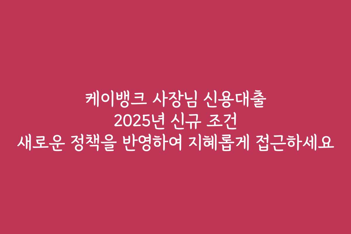 케이뱅크 사장님 신용대출 2025년 신규 조건 새로운 정책을 반영하여 지혜롭게 접근하세요
