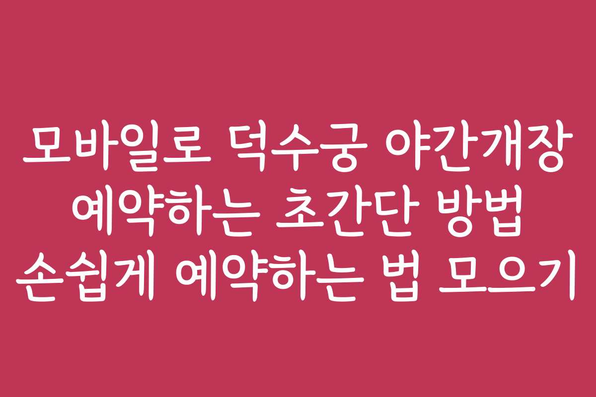 핵심 키워드: 모바일 예약, 덕수궁, 야경, 예약 방법, 간편 예약, 스마트폰, 여행, 문화재, 야경 투어, 관광, 예약 시스템