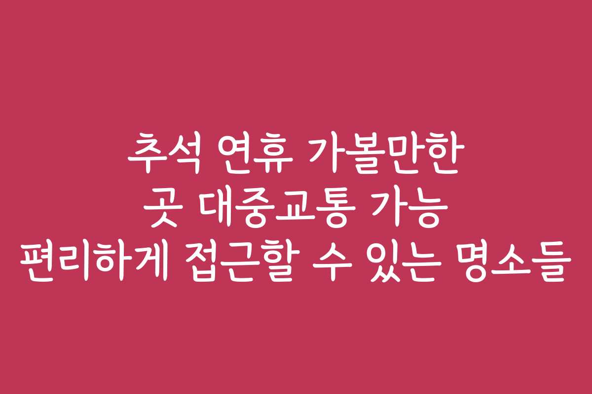 추석 연휴 가볼만한 곳 대중교통 가능 편리하게 접근할 수 있는 명소들