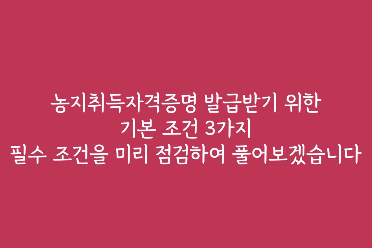 농지취득자격증명 발급받기 위한 기본 조건 3가지 필수 조건을 미리 점검하여 풀어보겠습니다