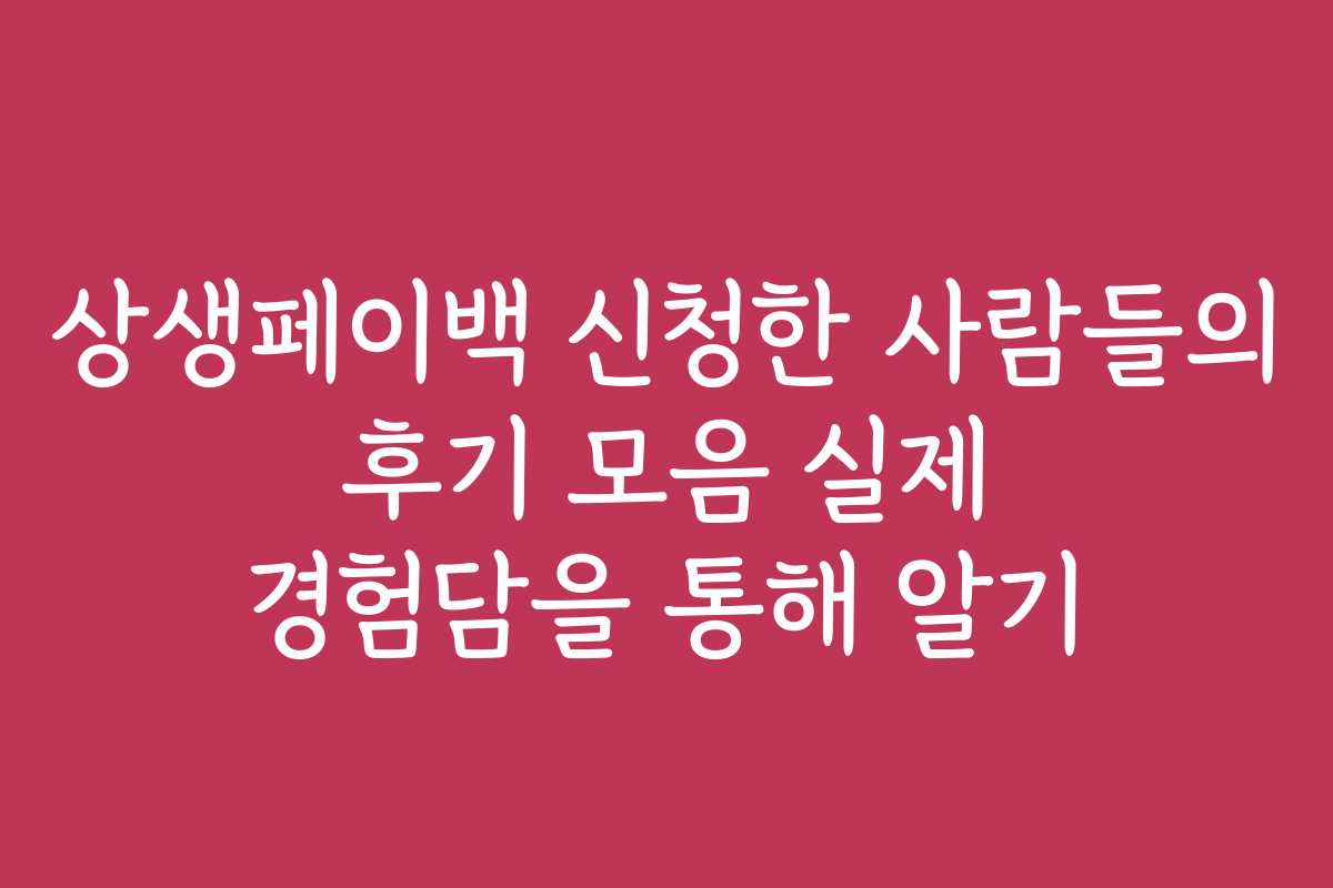 상생페이백 신청한 사람들의 후기 모음 실제 경험담을 통해 알기