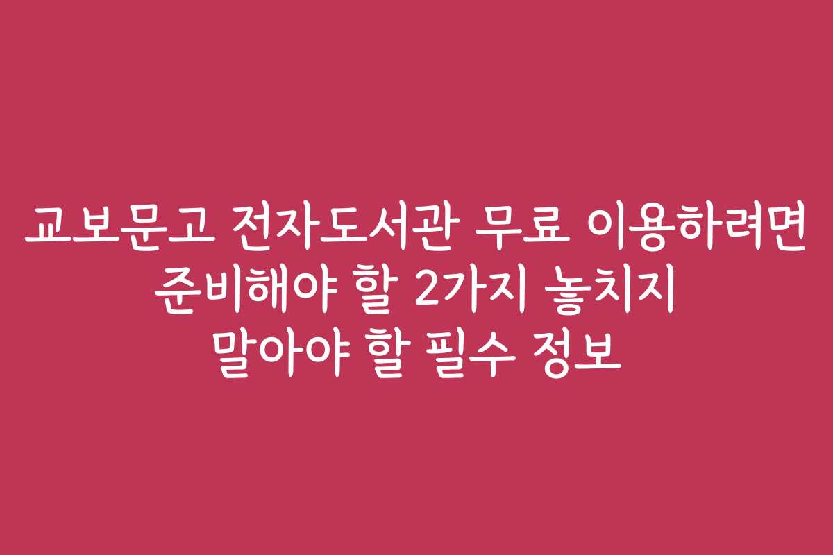 교보문고 전자도서관을 무료로 이용하고자 할 때, 무엇을 준비해야 할까요? 이 글에서는 무료 이용을 위해 꼭 알아야 할 두 가지 중요한 정보를 정리했습니다. 시간이 없거나 귀찮다는 이유로 기회를 놓칠 수 있으니, 미리 체크해보시기 바랍니다.