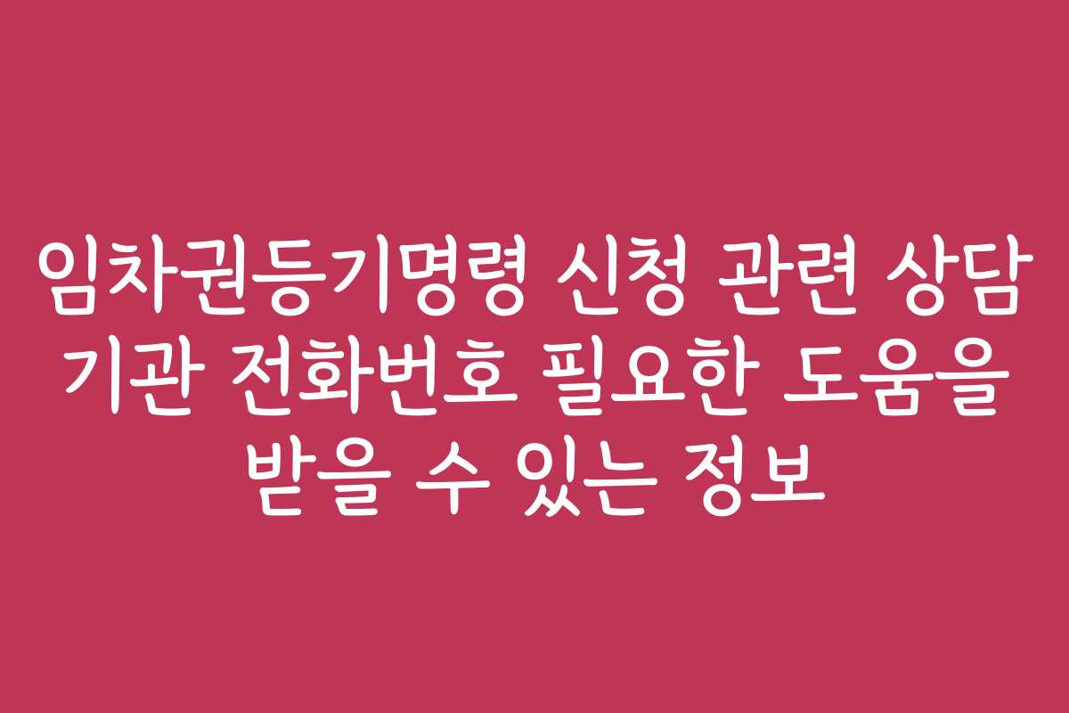 임차권등기명령, 상담 기관, 필요한 도움, 전화번호, 법률 서비스, 임대차 보호, 주거 안정, 신청 방법, 서류 준비, 트러블슈팅, 법률 상담
