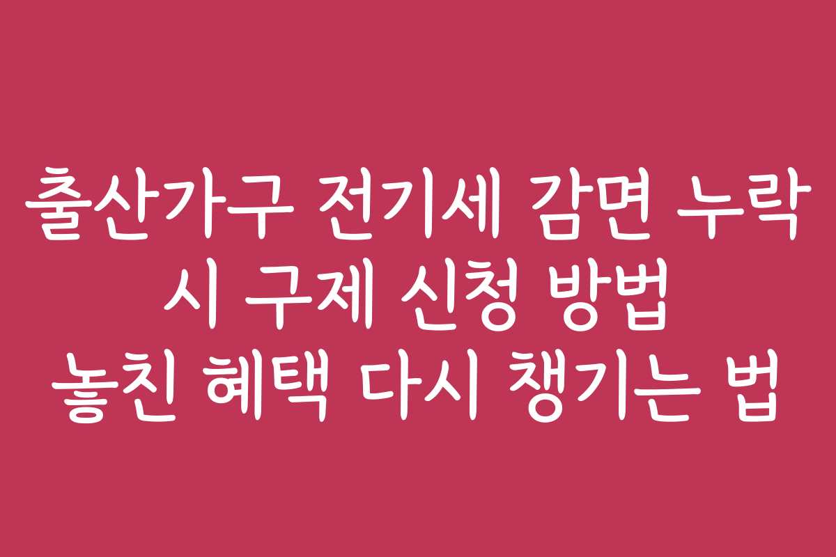 출산가구 전기세 감면 누락 시 구제 신청 방법 놓친 혜택 다시 챙기는 법