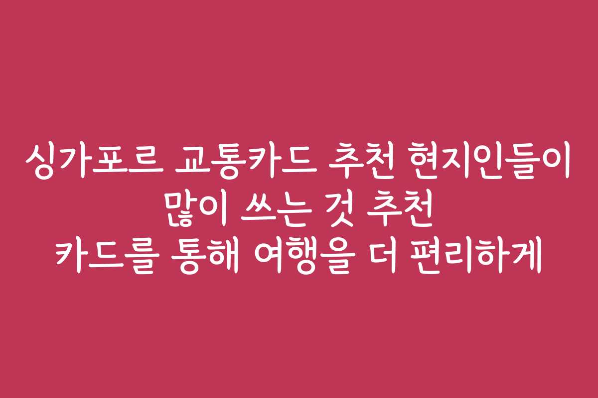 핵심 키워드: 싱가포르, 교통카드, EZ-Link, NETS FlashPay, 대중교통, 여행, 현지인 추천, 이용 방법, 충전, 할인 혜택, 리뷰
