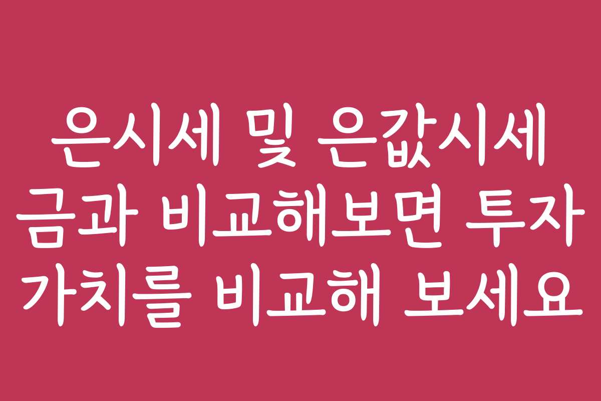 은의 시세는 금과 달리 각기 다른 변화 양상을 보이며 많은 투자자들에게 중요한 관심 대상입니다. 이번 포스트에서는 은시세 및 은값시세가 금과 어떻게 비교되는지, 그에 따른 투자 가치를 심도 있게 살펴보겠습니다. 은과 금의 투자 가치를 이해함으로써 보다 현명한 재정적 결정을 내릴 수 있습니다.